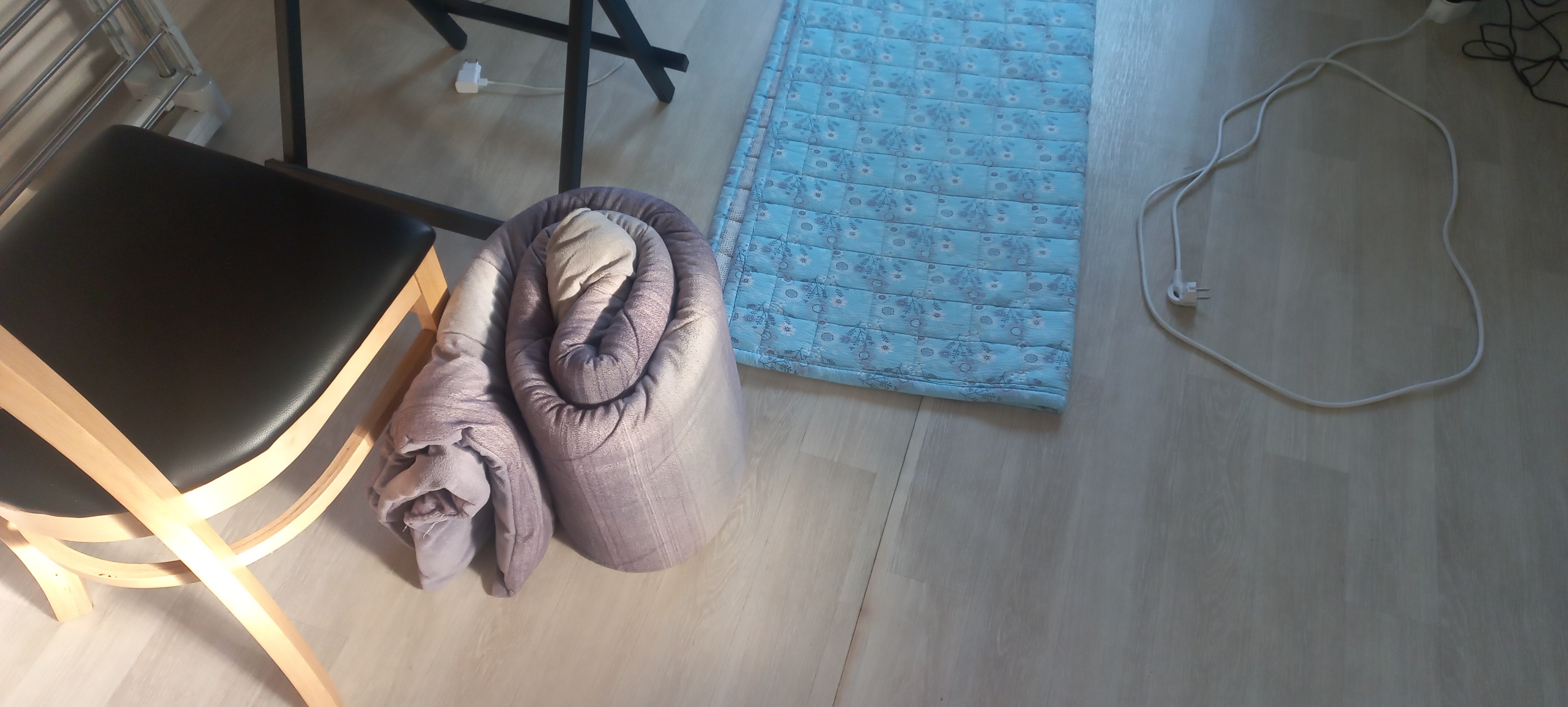 이불은 접어서 돌돌 말아줘요.