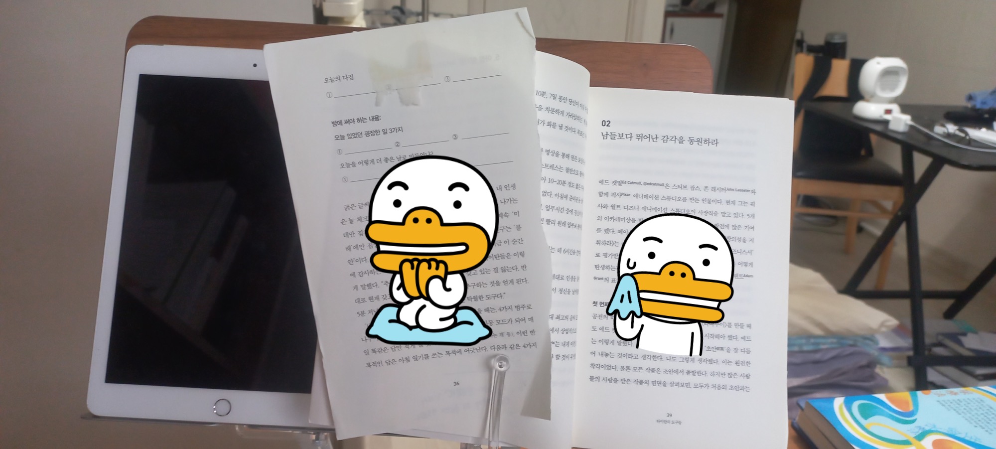 책을 찢으면 안돼죠.? 저는 중요한 것은 찢어서 벽에 붙여놓고 봤어요. 하지만 다시 보기에는 불편함이 있답니다.