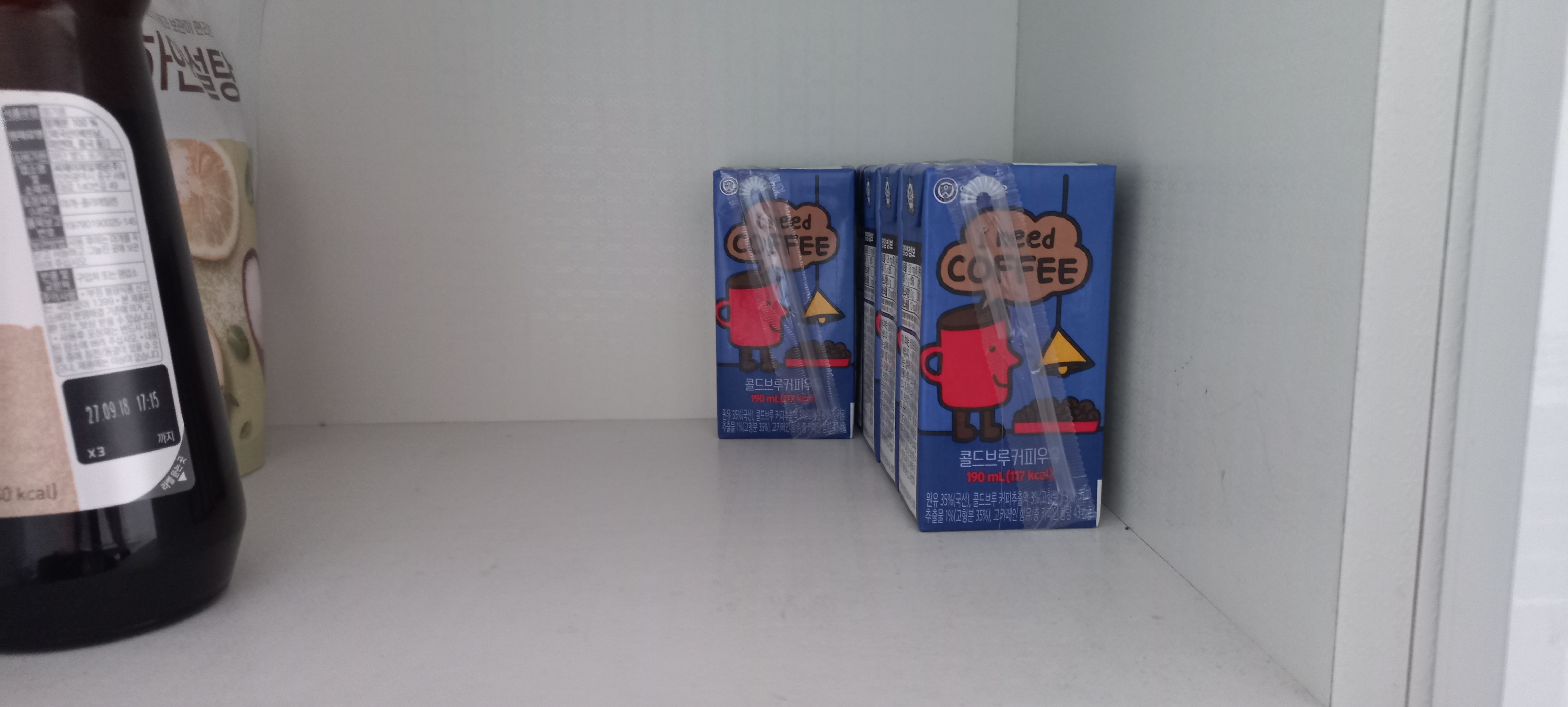 커피우유의 함량은 43밀리 그램이라는것 명심해 주세요