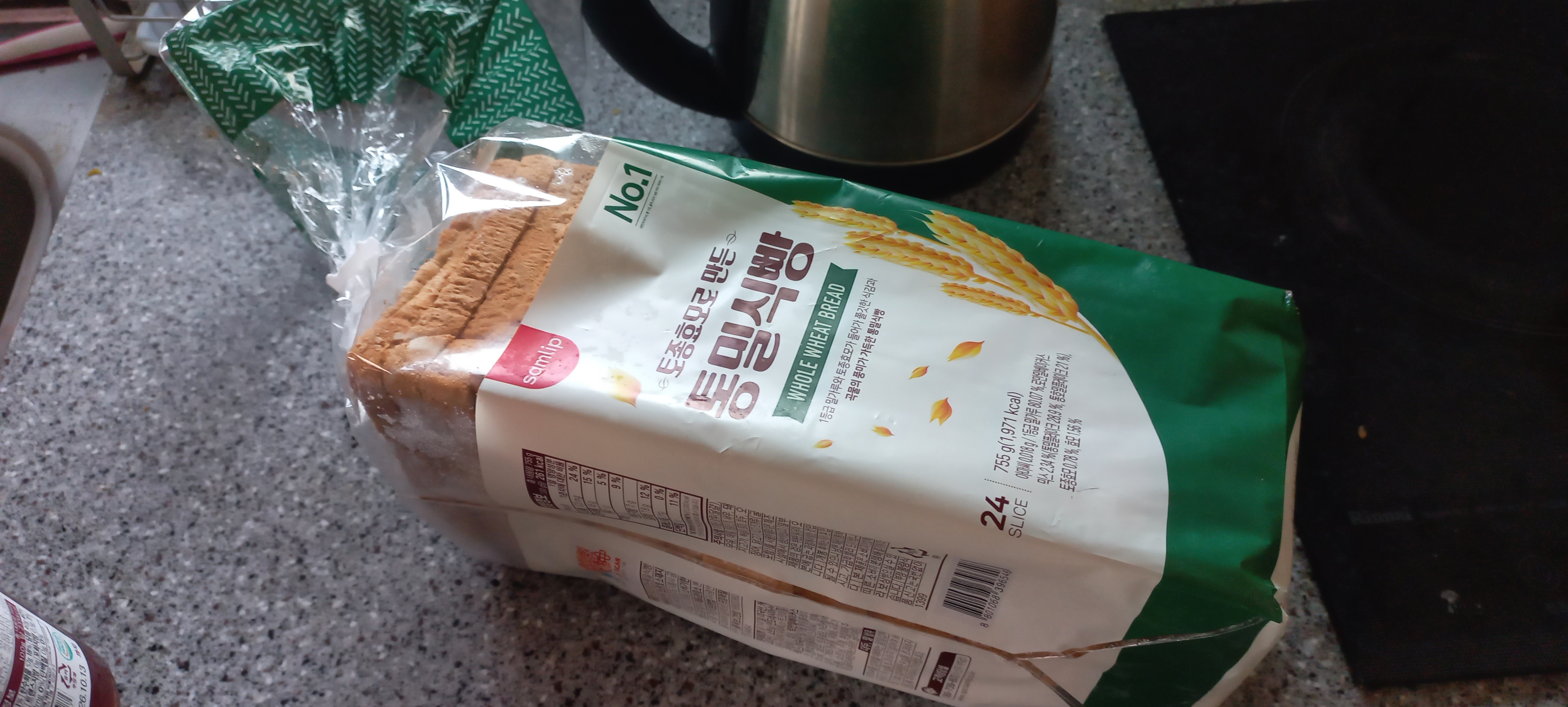 오랜만에 식빵을 샀어요. 딸기잼에 먹으면 정말 맛있어요.